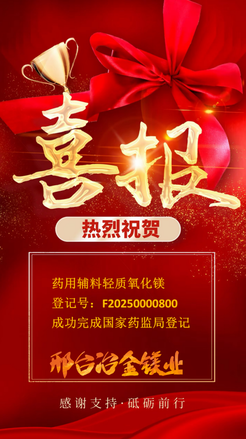 我司旗下藥用輔料輕質(zhì)氧化鎂(登記號(hào):F20250000800)已成功完成國(guó)家藥監(jiān)局登記,現(xiàn)正式開(kāi)放制劑關(guān)聯(lián)合作。